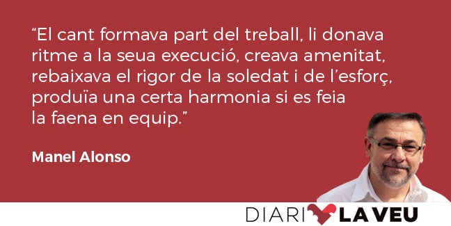 Aquesta mateixa setmana he tingut l’oportunitat de llegir l’entrevista que el poeta i periodista Hèctor Serra li ha fet a Josep Gimeno el Botifarra, en la qual el cantant afirma amb un punt de nostàlgia: «Abans tota la gent cantava: els ferrers, els fusters, els homes, les dones… Recorde que passaves per una casa i senties les dones cantar mentre treballaven. Els xiquets cantaven mentre jugaven». El cant formava part del treball, li donava ritme a la seua execució, creava amenitat, rebaixava el rigor de la soledat i de l’esforç, produïa una certa harmonia si es feia la faena en equip.