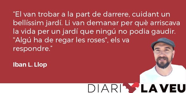 Deixe tot això als turistes mentre m’ature davant dels murs en pedra seca que van ser els límits d’un jardí creat per alguns presoners. En els parterres només hi ha una mica d’herba que encara no ha estat menja dels ases famosos de l’illa. Contemple el jardí, intente recordar un dia de fa més de vint anys, a la facultat de filologia de la Universitat de Barcelona. El professor Basilio Losada havia convidat l’escriptor Agualusa i un altre escriptor que ara no sé com li deien. Diria que va ser Agualusa qui ens va explicar la història d’un vell durant la guerra civil a Angola. Cada dia aquell vell es jugava la vida per entrar en una casa abandonada i després de passar allí unes hores se’n tornava cap a casa. Un misteri. No sabria dir si va ser el mateix Agualusa o si Agualusa ens va explicar que ho va fer un altre, però la qüestió és que van seguir el vell i, d’amagat, entraren dins de la casa. El van trobar a la part de darrere, cuidant un bellíssim jardí. Li van demanar per què arriscava la vida per un jardí que ningú no podia gaudir. “Algú ha de regar les roses”, els va respondre.