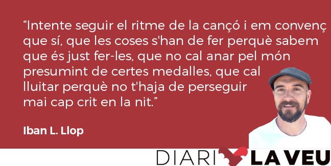 Pense en eixe nas trist com una pujada i en els ulls alegres d’italià, que deia Paolo Conte. Em fa somriure recordar la cançó, zazara zaz, zazara zaz, za za za ra za za za za zaz… Intente seguir el ritme de la cançó i em convenç que sí, que les coses s’han de fer perquè sabem que és just fer-les, que no cal anar pel món presumint de certes medalles, que cal lluitar perquè no t’haja de perseguir mai cap crit en la nit.