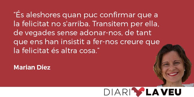 No obstant això, el dia que faig anys, no paren les felicitacions, els meus fills han trencat la vidriola per a comprar-me un regalet, espere impacient que arribe demà per a gravar nous programes d’Assumptes interns per a À Punt i és aleshores quan una vegada més puc confirmar que a la felicitat no s’arriba. Transitem per ella, de vegades sense adonar-nos, de tant que ens han insistit a fer-nos creure que la felicitat és una altra cosa. Però no, la felicitat és passar-ho a cor què vols a l’últim concert de Vetusta Morla a València; és eixe gelat als peus del Micalet dissabte de vesprada; són les llepolies de meló i mandarina; és pessigar d’amagades el xocolate amb ametla després de dinar; és eixe vestit de l’aparador de la tenda del cantó que damunt és la teua talla; és un comiat amb un “mamà guapa” i amb aquell primer somriure matiner; és acabar cada dia llegint amb Arnau i Amàlia; és eixa sessió de sofà en bona companyia; és un nou capítol de “The goog fight”; és posar la tele i veure el Botifarra al Prats de Morella; sí, també ho és comptar el dies que falten per a tornar a compartir somriures i vinets a eixe mateix lloc; és tornar-te boja organitzant la pròxima escapada amb els teus perquè hi haja atractius diversos per a uns i altres; fins i tot són els nervis abans d’eixir a l’escenari encara que en eixe moment no ho semble; és un aforisme de Ramón Eder; són les ocurrències d’Olivier Bordeaut a les primers pàgines d’Esperando a Mister Bojangles; o ho són els subratllats en el 4,3,2,1 d’Auster; és l’Albir, sempre l’Albir i la seua platja; són els rotllets d’ou que continua fent ma mare als noranta –nyas!–; és aquell vermut a la Casa de l’Art; és aconseguir aparcament a la primera a Altea; és collir taronges a Finestrat amb el Puig Campana de fons; és imaginar el moment en què per fi estiga davant de la Porta del Paradís de Guiberti; és fer plans, malgrat que no arriben a materialitzar-se, i tantes i tantes coses que ens oblidem de valorar perquè ens havien dit que la felicitat era una altra cosa.
