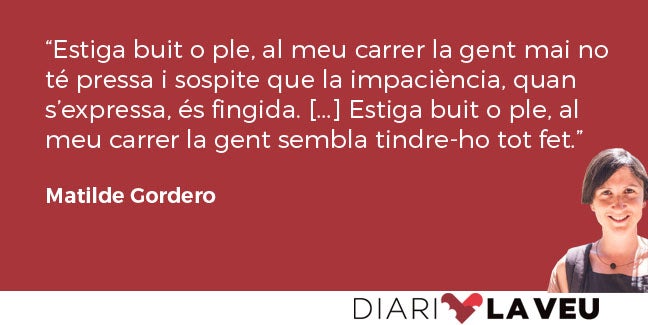 Estiga buit o ple, al meu carrer la gent mai no té pressa i sospite que la impaciència, quan s’expressa, és fingida.