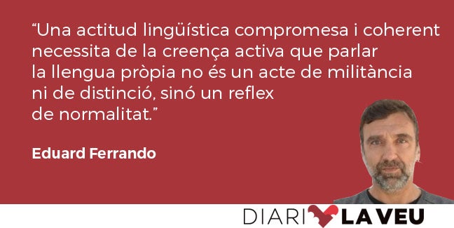 Però tot plegat serà suficient? Malauradament, la resposta en aquest cas és sempre no. Actualment patim un desequilibri patent entre el coneixement i l’ús de la llengua, és a dir, és cert que les dades poden recollir que el català té més de 10 milions d’usuaris, però això només vol dir que hi ha 10 milions de persones que la poden fer servir, que l’entenen i la parlen, però és això garantia d’ús? Evidentment, no. Aquesta distància entre ús i coneixement palesa alguns problemes relacionats amb l’actitud lingüística del parlant de la nostra llengua, que, segons dades recollides també a l’informe, en més d’un 70% dels casos (a Catalunya i les Illes, imagineu al País Valencià) canvia de llengua quan algú els contesta en espanyol, malgrat que segurament es podria establir un procés comunicatiu completament normal en una situació de bilingüisme com la nostra. Per tant, aquesta infidelitat lingüística que tant de mal fa a la nostra llengua ha de revertir-se mitjançant una actitud lingüística compromesa i coherent, una actitud que necessita de la creença activa que parlar la llengua pròpia no és un acte de militància ni de distinció, sinó un reflex de normalitat, de la normalitat que suposa fer servir un codi lingüístic compartit entre dos usuaris que s’enfronten a un procés de comunicació habitual.