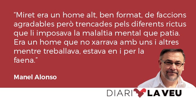 La saviesa popular diu que a cap boig li dona per treballar, però Miret sí que ho feia, sempre estava disposat a ser llogat per a la faena que fora. Quan jo era un tendre i tímid adolescent vaig ser parella de tira de Paco en la collita de satsumes i clementines.