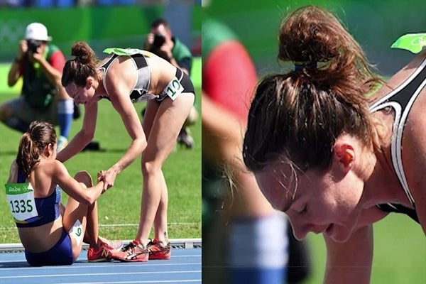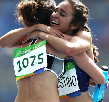 El primer d’aquests gestos va tindre com a protagonistes les atletes Nikki Hamblin i Abbey D’Agostino, que van ser les últimes en arribar a la meta, el dimarts dia 16, en la segona ronda dels 5000 metres. Durant aquesta prova, la neozelandesa Nikki Hamblin va caure, i l’americana Abbey D’Agostino va ensopegar amb Hamblin, caient també ella mateix a terra. Va ser D’Agostino qui, en alçar-se, en compte de continuar corrent, va ajudar la seua companya a incorporar-se a la cursa. Però al cap d’una estona, mentre continuava la prova, va ser l’americana qui començà a coixejar i tornà a caure. I aleshores la neozelandesa Hamblin, que anava corrent bé, es va parar per ajudar Abbey D’Agostino que es trobava a terra.
