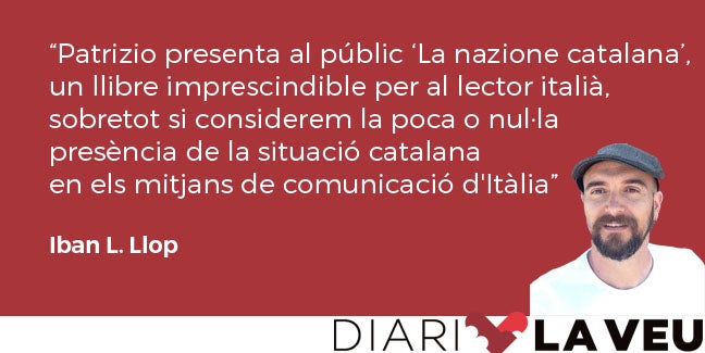 La sala Mosaico ja és plena quan hi arribe, salude Patrizio i comentem la situació dels estudis de català a la Universitat de Sàsser. He fet tot el que he pogut, li dic. Poc després Patrizio presenta al públic La nazione catalana, un llibre imprescindible per al lector italià, sobretot si considerem la poca o nul·la presència de la situació catalana en els mitjans de comunicació d’Itàlia i, si hi apareix, sempre amb una imatge distorsionada, que no entens si tot plegat és volgut o per ignorància.