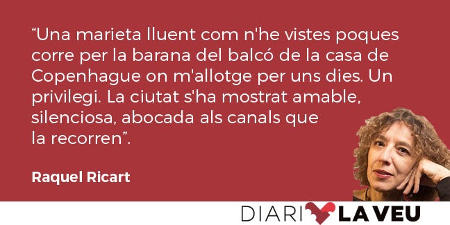 Una marieta lluent com n’he vistes poques corre per la barana del balcó de la casa de Copenhague on m’allotge per uns dies. Un privilegi. La ciutat s’ha mostrat amable, silenciosa, abocada als canals que la recorren. I ha estat un regal agafar un tren fins a Rungsted per anar a visitar la casa ďuna escriptora admirada: Karen Blixen (Isak Dinesen).