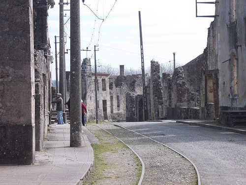 Les runes de la vila màrtir s’aixequen enmig d’un paisatge exuberant de prats i aigua, de petits boscos i sembrats, d’ondulacions suaus. De l’Orador que va ser pròsper un dia ja no queda res. Avui, els seus edificis, s’aixequen espectrals, tristos, com esquelets d’animals dessecant-se sota el cel. A les cases i als carrers encara han quedat per sempre més les restes mig carbonitzades del que un dia va ser un lloc curull de vida, una estampa de la bucòlica França rural. Entre els murs mig esbucats s’escampa tot un univers d’estris domèstics fets malbé, rovellats, entortolligats pel foc: un bressol, una màquina de cosir, una bicicleta, un garatge ple de cotxes socarrimats, una safa, el capçal d’un llit… Ací s’aixecava la casa del dentista, allà la benzinera, allà les escoles dels xiquets i la de les xiquetes, la infantil dels refugiats del Mosa, l’estació del tramvia, la granja de Lauze i la de Laudy… avui només hi ha desolació, pedres que olen a mort…