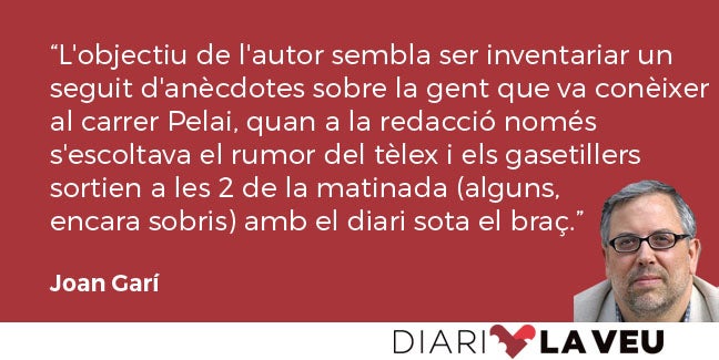 L’autèntic objectiu de l’autor, però, sembla ser inventariar tot un seguit d’anècdotes sobre la gent que va conèixer al carrer Pelai, quan el seu hall era ple de conserges, a la redacció només s’escoltava el rumor mecànic del tèlex i els gasetillers sortien a les 2 de la matinada (alguns, encara sobris) amb el diari sota el braç.