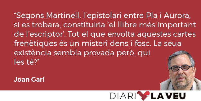 Aurora Perea, en aquet pòdium, ocupa un lloc a part. Segons Martinell, l’epistolari entre Pla i Aurora, si es trobara, constituiria “el llibre més important de l’escriptor”. Tot el que envolta aquestes cartes frenètiques és un misteri dens i fosc. La seua existència sembla provada però, qui les té? Al capdavall, a les 30.000 pàgines de la seua Obra Completa a penes parla de les dones de la seua vida. Però hi eren.