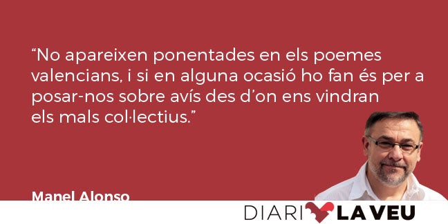 Els poetes valencians, com els llauradors, tenen una set inesgotable de pluja. Els agrada perdre la mirada escrutant el firmament i miren de reüll els penells per a veure d’on ve el vent.