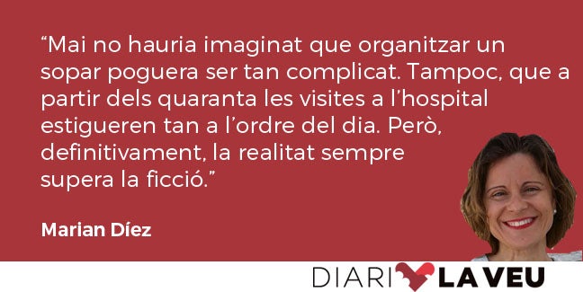 Mai no hauria imaginat que organitzar un sopar poguera ser tan complicat. Tampoc, que a partir dels quaranta les visites a l’hospital estigueren tan a l’ordre del dia. Però, definitivament, la realitat sempre supera la ficció.