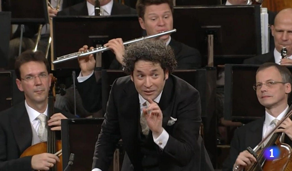 Així doncs, atenent a aquest concert de Cap d’Any que dirigia el veneçolà Gustavo Dudamel, van oferir una primera part desafortunada pel que fa a la mesura i exageració rítmica de la pulsació. Potser per això el de Barquisimeto optà per carregar el programa de polques, amb una pulsació més propera a la seua música popular i factible de resultar exitós. No fou però fins a l’Alegria de l’hivern de Josef Strauss que Dudamel no s’alliberà de certa angoixa que sobrevolava la fesomia del jove director veneçolà. A partir d’ací, més còmode, semblava que per fi es veuria el xou que la seua tria prometia en 2016. Tanmateix, aquell temperament fervorós, quasi xamànic que l’han apujat amb 35 anys fins al cim internacional de la direcció d’orquestra, mai no arribà al llarg del concert. S’intuí amb els continus i de vegades encertats contrastos dinàmics, i ho intentava amb les intencionalitats per musicar les frases a base de ritenutos, cedendos, ritardandos, calandos, etc., i accelerandos, que acabaren per ser tan reiteratius que avorrien. Però la disbauxa de moviments, només perceptibles ocasionalment, i les poses exagerades de cara a la galeria, es mostraren molt més mesurades en aquesta ocasió.