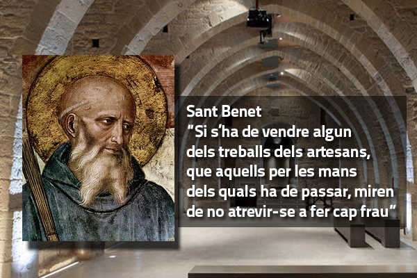 Sant Benet demanava (i ens demana encara hui) que anem en compte per no caure en el desig innat de posseir, d’acumular i de guanyar més i més (i no d’una manera honesta) ja que ací es troba l’arrel de l’avarícia i de la cobdícia. És tan important aquest punt, que Sant Benet insisteix així en aquest capítol: “Si s’ha de vendre algun dels treballs dels artesans, que aquells per les mans dels quals ha de passar, miren de no atrevir-se a fer cap frau” (RB 57:4). I també en el mateix capítol: “Que en els preus no s’infiltre el mal de l’avarícia” (RB 57:7). I perquè els monjos visquem amb honradesa, sense caure en el vici dels diners, al capítol 4 de la Regla, quan Sant Benet ens dóna uns “instruments de les bones obres”, ens mana “no furtar” (RB 4,5), ja que la base de l’avarícia es troba en la capacitat de robar.