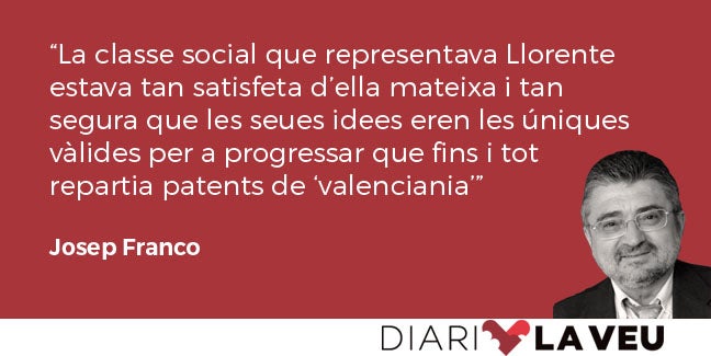 La classe social que representava Llorente estava tan satisfeta d’ella mateixa i tan segura que les seues idees eren les úniques vàlides per a progressar que fins i tot repartia, com Zaplana, Camps, la senyora Bonig o la difunta Rita, patents de “valenciania”: qui no pensa com ells, adoctrina; qui no combrega amb les seues idees reaccionàries, és un traïdor; qui no considera que viure “vora el barranc dels Algadins” equival a viure al paradís, valdria més que se n’anara a viure a Etiòpia.