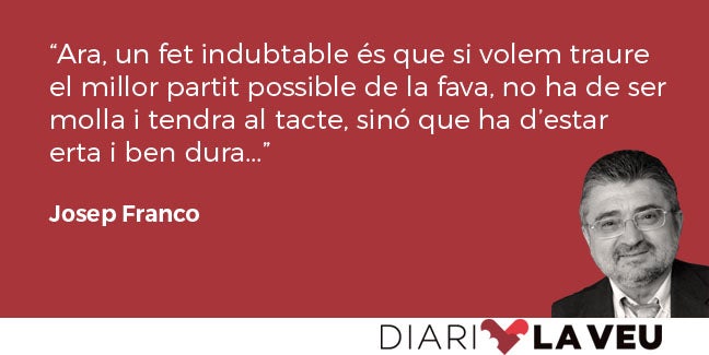 Ara, un fet indubtable és que si volem traure el millor partit possible de la fava, no ha de ser molla i tendra al tacte, sinó que ha d’estar erta i ben dura…