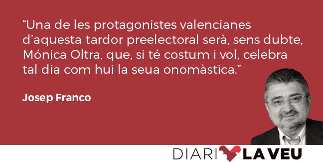 Una de les protagonistes valencianes d’aquesta tardor preelectoral serà, sens dubte, Mónica Oltra que, si té costum i vol, celebra tal dia com hui la seua onomàstica.