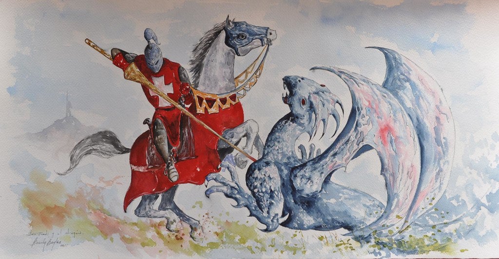 La pintura censurada, sense les quatre barres, de Sant Jordi