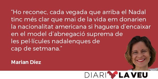 Ho reconec, cada vegada que arriba el Nadal tinc més clar que mai de la vida em donarien la nacionalitat americana si haguera d’encaixar en el model d’abnegació suprema de les pel·lícules nadalenques de cap de setmana. Aquelles dones que esperen el Nadal amb els braços oberts per a lluir-se en la decoració de la casa, en els menús familiars, en les funcions escolars i en tot el que faça falta. Només de pensar haver de farcir un titot d’aquells que presenten després a la taula ja em faig suant –i això sense entrar a valorar els ingredients que fan servir i que en alguns casos ni tan sols sé si són comestibles–.