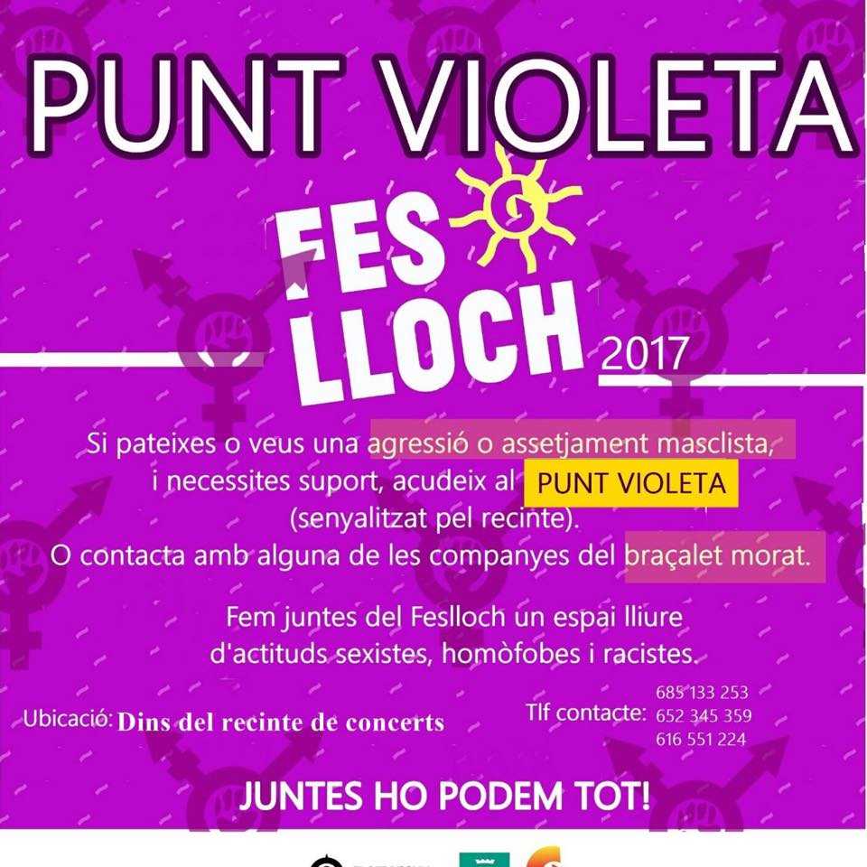 És per això, precisament, per quatre violacions i 23 abusos sexuals denunciats, que un festival de música suec, el Bråvalla, anuncià la setmana passada que cancel·larà la seua pròxima edició. Aquest cap de setmana jo també vaig assistir a un altre festival de música, el Feslloch. A la cua on repartien les polseres d’abonament, una xica abillada amb un braçalet morat –una mera cinta nugada, en realitat– em repartí un xicotet pamflet també morat. En ell s’hi presentava un col·lectiu de voluntàries, Punt Violeta. El seu objectiu era fer front a qualsevol tipus d’agressió masclista que poguera tindre lloc durant el festival. Oferien ajuda i protecció. Al quart de foli que m’havien proporcionat, detallaven les diverses maneres per posar-se en contacte amb elles: acudir a les voluntàries amb braçalet, a la paradeta de què disposaven dins del recinte, buscar les banderes que onejaven dalt de cada tenda de les voluntàries o trucar a algun dels tres telèfons que hi oferien. En veure que eren, igual que jo, assistents, vaig caure en l’error de compadir aquelles desventurades que no gaudirien del festival, afaenades les 24 hores. Com d’equivocada estava! Era ben bé al contrari! Qui no anava a gaudir del festival, si no fóra per la seua tasca, anava a ser jo. No era compassió, sinó orgull i admiració el que sentí per aquell grup de xiques, que havien perdut temps i energia a organitzar-se i procurar la tranquil·litat i la seguretat, no només meua, sinó de totes les assistents.