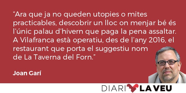 Ara que ja no queden utopies o mites practicables, descobrir un lloc on menjar bé és l’únic palau d’hivern que paga la pena assaltar. A Vilafranca (Els Ports) està operatiu, des de l’any 2016, el restaurant que porta el suggestiu nom de La Taverna del Forn.