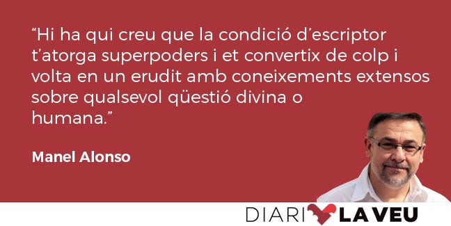 Hi ha qui creu que la condició d’escriptor t’atorga superpoders i et convertix de colp i volta en un erudit amb coneixements extensos sobre qualsevol qüestió divina o humana.