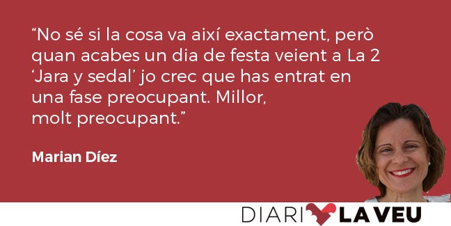 No sé si la cosa va així exactament, però quan acabes un dia de festa veient a La 2 Jara y sedal jo crec que has entrat en una fase preocupant. Millor, molt preocupant. Això almenys vaig pensar divendres passat quan, de sobte, em vaig sorprendre a mi mateixa tirada al sofà dins d’una manta de cua de sirena i veient Jara y Sedal. A un paso de Toledo. Que igual Miguel Delibes estaria orgullós de mi per aquest interés sobtat per la caça, però he de reconèixer que més que interés era desídia. No estava ni per a fer servir el comandament a distància i canviar de cadena, així que durant una estona vaig deixar que aquells dos hòmens em contaren el que puc trobar a la finca Mocahres si m’interessen els conills, perdius o faisans.