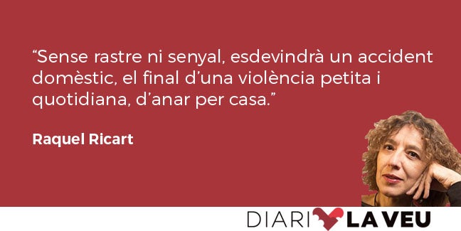 Hi ha un punt de sang a la mà dreta, entre els dits. No res. Ni li cou. El que li cou és més endins, a les entranyes, als budells, a la melsa i al fetge, a la sang que li corre per les venes fins a entrar al cor i fer‑lo glatir. Però això no s’hi veu, a bell ull, i tampoc no ho veurà la forense quan li practicarà l’autòpsia més tard, aquell mateix dia o potser l’endemà, després que Gori s’alce i l’empente contra la pica encara no m’has fet el cafè i ella es colpege el cap contra el marbre i deixe d’alenar. Sense rastre ni senyal, esdevindrà un accident domèstic, el final d’una violència petita i quotidiana, d’anar per casa.