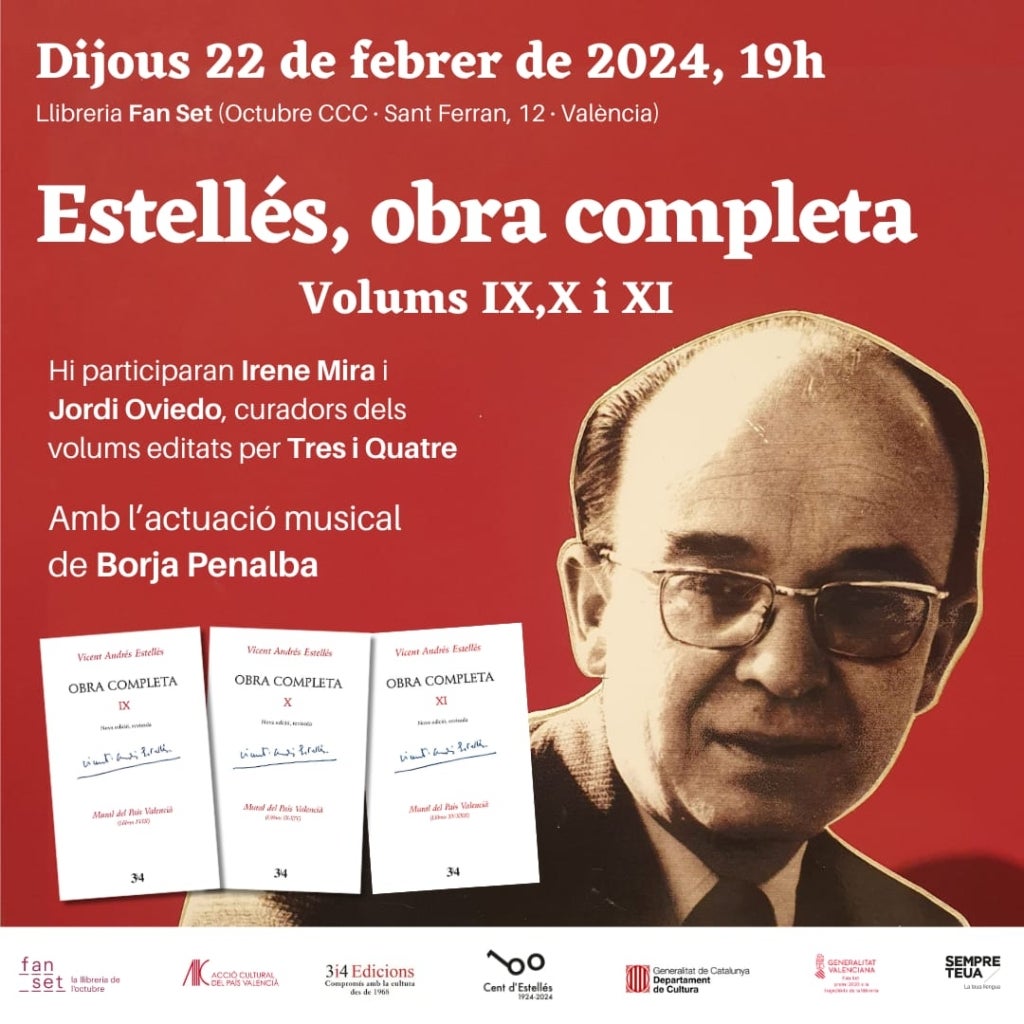 Edicions Tres i Quatre publica els volums X i XI de l’Obra completa revisada de Vicent Andrés Estellés, dedicats al treball més monumental d’Estellés: Mural del País Valencià, una obra en què el poeta volia fer-se càrrec de la història del país, de la seua geografia i d’alguns dels seus personatges més destacats.