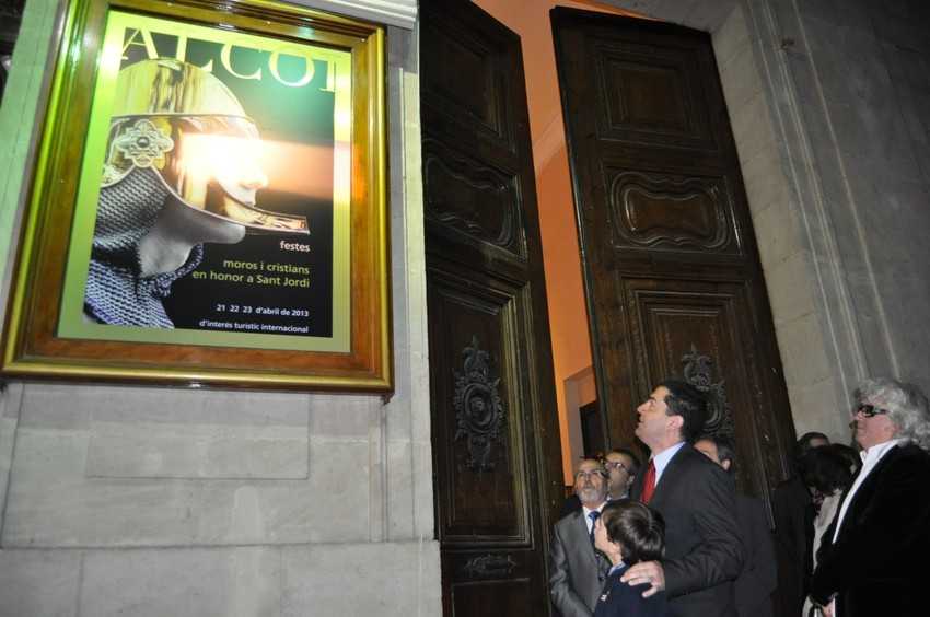 Un jove guerrer cristià de perfil és el protagonista, com també el seu casc, on es reflecteixen detalls de la festa alcoiana, com per exemple les banderes de la Creu de Sant Jordi, que pengen als balcons durant tot el mes.