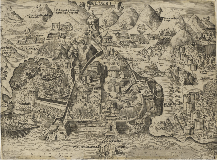 Pinet, A. (1541). View of the siege of Algiers [Imatge digital]. Royal Collection Trust. Recuperat el 11 d’octubre de 2025, de https://militarymaps.rct.uk/ottoman-habsburg-wars-1521-1791/view-of-the-siege-of-algiers-1541-algiers-alger-algeria-36deg4509n-03deg0231e