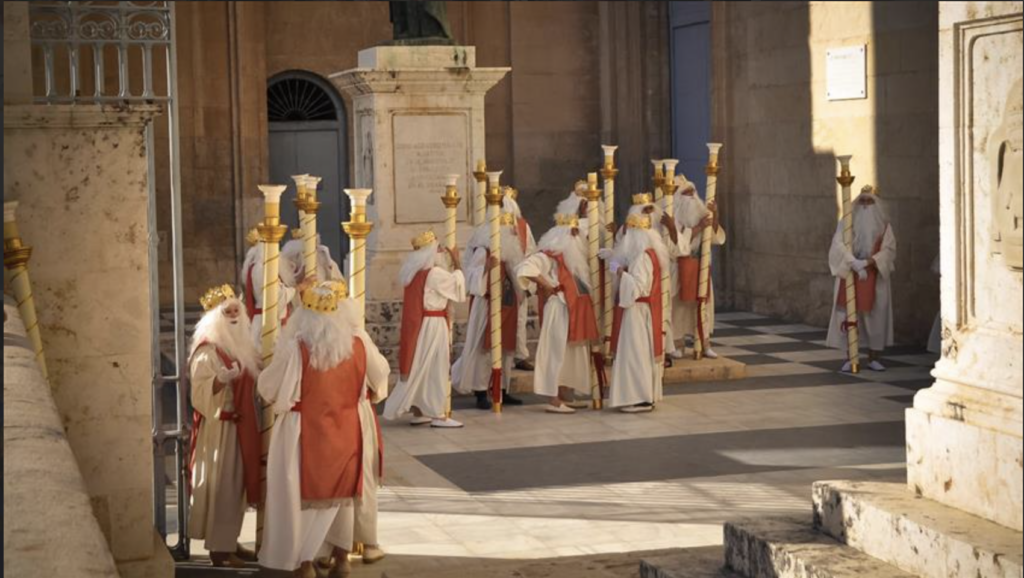 A partir de les 12 hores, la cavalcada del Convit, recorrerà el centre de València: plaça de Manises, carrer de Cavallers, plaça de la Mare de Déu, carrer del Miquelet, plaça de la Reina, carrers dels Cabillers i de les Avellanes, i plaça de l’Almoina i del Palau.