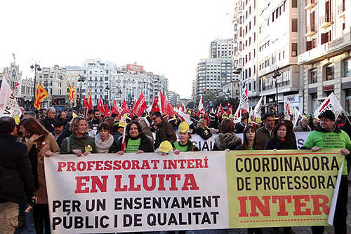 Açò és conseqüència que la política seguida per l’administració educativa ha sigut la de no cobrir amb noves places de personal funcionari les de persones que s’han jubilat, de manera que s’han perdut llocs de treball estables amb els decrets de plantilles, l’augment d’hores lectives i l’augment del nombre d’alumnat per aula. D’aquesta manera es transforma el treball estable en precari.