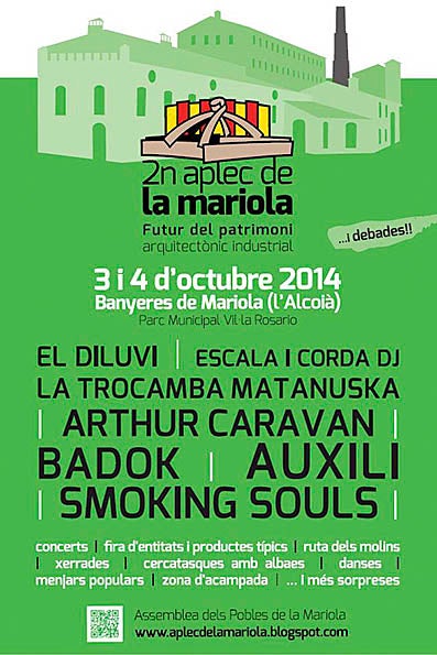 L’Assemblea dels Pobles de la Mariola ha presentat el cartell de concerts de les nits del 2n Aplec de la Mariola que tindrà lloc els propers 3 i 4 d’octubre a Banyeres, i que tindrà com a lema: ‘Futur del patrimoni arquitectònic industrial’.