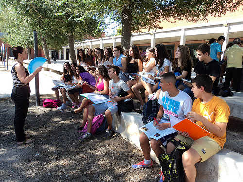 A les fotografies podem veure com l’alumnat ha d’eixir de les aules per a fer classes per les insuportables condicions ambientals que pateixen dins del centre. A més també poden llegir adjunt a aquesta notícia els dos documents redactats pel claustre de professors amb els quals volen fer difusió del seu malestar per la no consesuada decisió del Govern valencià que ha portat al caos més absolut en molts centre del País Valencià.