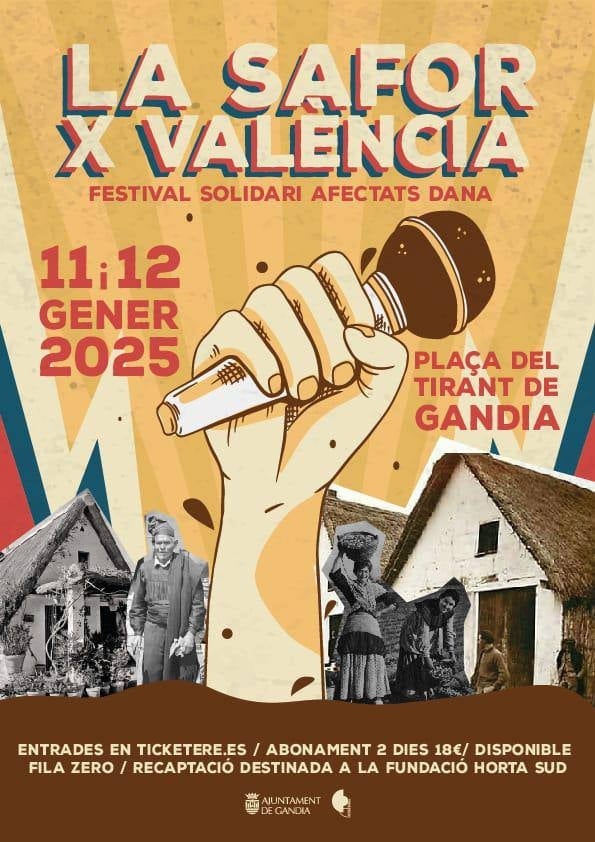 Els dies 11 i 12 de gener –dissabte i diumenge de la setmana que ve– Gandia, capital de la comarca de la Safor, acollirà el festival solidari amb els afectats per la DANA «La Safor per València».