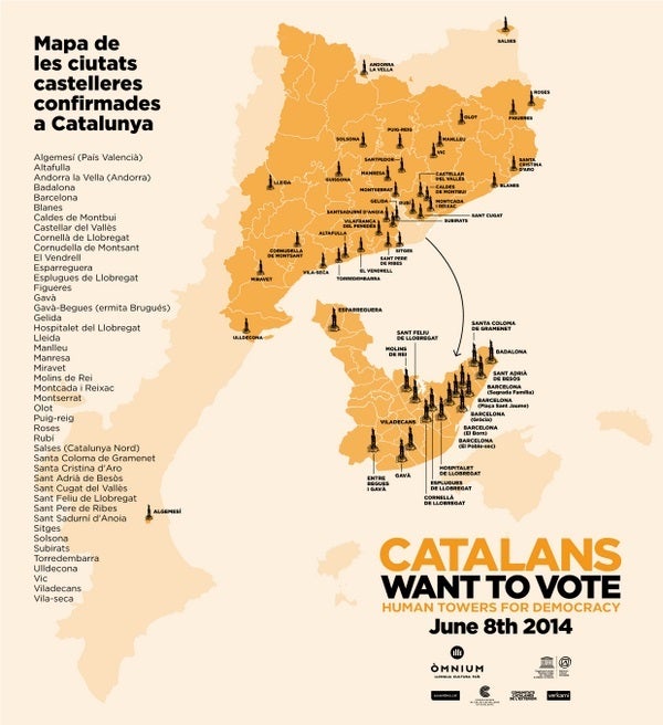 La campanya ‘Catalans want to vote – Human towers for democracy’ es pot seguir via twitter en #CatalansWantToVote.