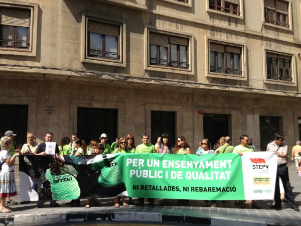 Desenes de docents interins s’han concentrat aquest matí a les direccions territorials d’Educació d’Alacant i Castelló i davant el SERVEF de Baró de Càrcer a València per a denunciar, novament, l’acomiadament de tot el personal interí, uns 6.000, per aplicació del decret Vela per segon any consecutiu.