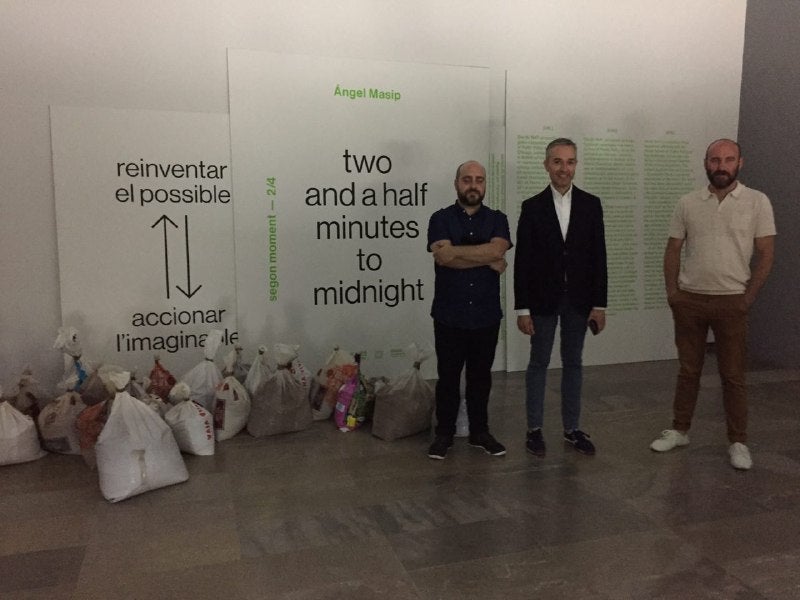 Com ha estat el pas de la humanitat pel món? Quina empremta ha deixat l’home i quins elements han condicionat la seua existència? Aquestes són algunes de les moltes preguntes que es planteja l’artista d’Alacant Ángel Masip, qui des d’aquest divendres 15 de setembre exposa al Centre del Carme Dos minuts i mig per a la mitjanit (Two and a half minutes to midnight). Es tracta d’una instal·lació comissariada per Juan Luís Toboso i emmarcada dins del segon moment del cicle ‘Reinventar el Possible-Accionar l’imaginable’, que al seu torn duu al museu les idees que el comissari va plasmar en el seu projecte guanyador del 365 DIES VLC que convoca el Consorci de Museus.