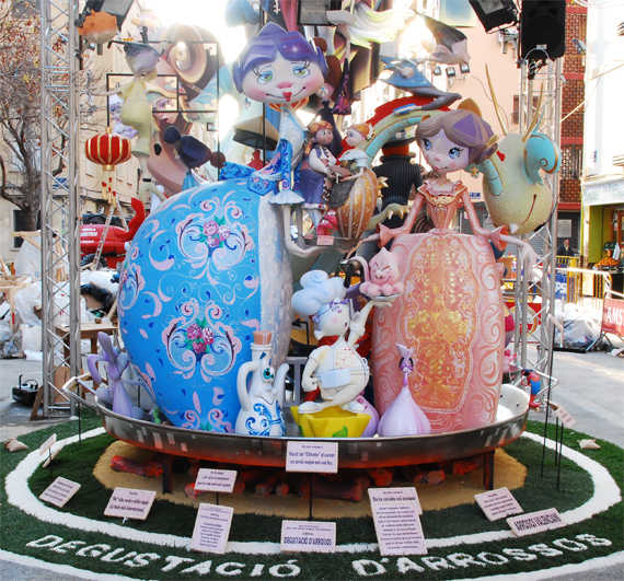 El monument, obra de l’artista faller alzireny, Julio Monterrubio, porta el títol ‘Degustació d’arrossos’ i mostra com a figures principals dues falleres sobre una paella, on l’arròs n’és l’ingredient estrella. Monterrubio aconseguix aquest guardó per quart any consecutiu.