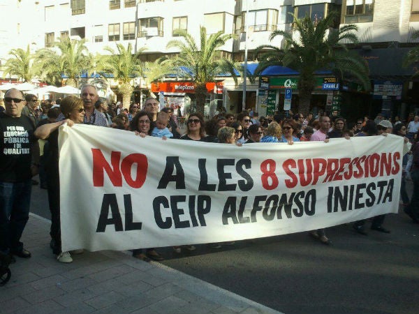 La pregunta del diputat de Compromís ve al cas perquè el mes de juny de 2012 ja es van suprimir quatre mestres al CEIP Alfonso Iniesta, dos d’Infantil, un de Primària i un de Pedagogia Terapèutica. El nou Decret de Plantilles d’abril de 2013 té previst eliminar per al proper curs 2013-2014 quatre mestres més: dos de Primària, un de Francés i un altre de Pedagogia Terapèutica.