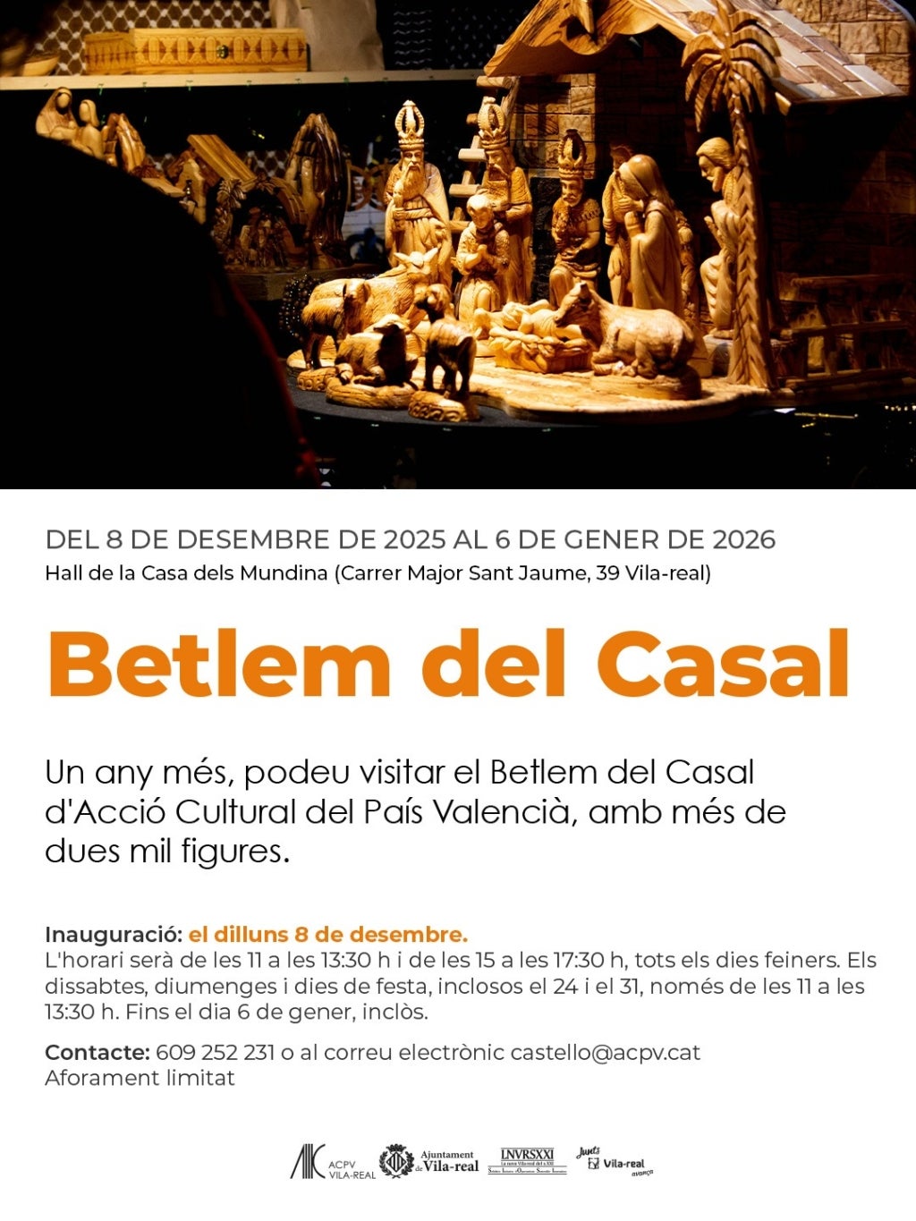 Amb aquest nou emplaçament, el Betlem del Casal reforça el seu caràcter popular, crític i arrelat al territori. “Us esperem a la Casa Mundina per veure el Betlem del Casal de Vila-real”, conclou la invitació dels impulsors de la mostra, que es pot visitar fins al 6 de gener.