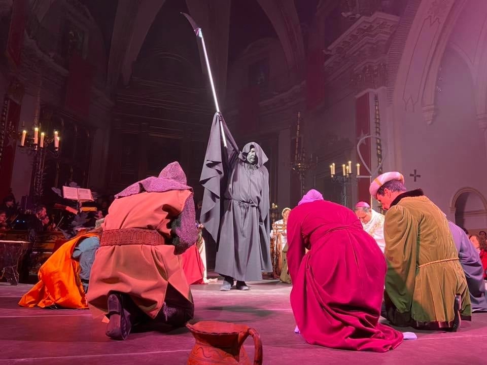 Rafa Cantavella, de la Colla de Campaners, i Paqui Gramage, membre del Grup de Danses, que ha participat en totes les representacions en el paper de la monja, han fet una crida a la ciutadania assistir-hi diumenge i «gaudir d’esta cita ja tradicional al calendari nadalenc ontinyentí».