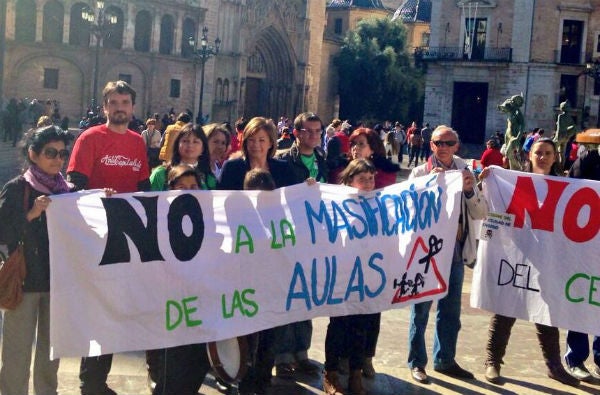 Pares i mares del col·legi Ciutat d’Oviedo de Torrevella s’han concentrat aquest matí pels voltants de les Corts Valencianes en rebuig a la supressió del col·legi sencer el curs que ve per estar en barracots.