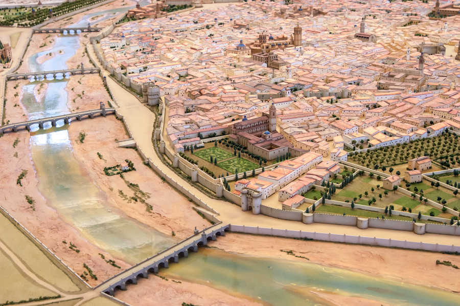 La maqueta, un treball artesanal dirigit per l’estudi de Vicente Herráiz i Lucas Gómez (que ha utilitzat més de 100.000 hores per a l’execució del projecte), s’ha dissenyat a escala 1:500, policromada i amb materials plàstics. Compta amb 50.000 arbres i 450 blocs de cases i tots els edificis estan tallats i pintats a mà.