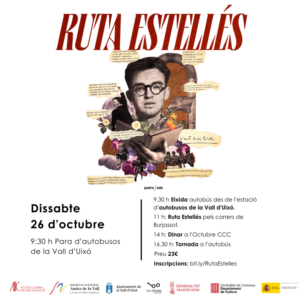 Ja dissabte, Acció Cultural organitza una ruta estellés per Burjassot (Horta Nord) per a veïns de la Vall d’Uixó (Plana Baixa), que s’hi podran desplaçar en un autobús habilitat des de l’estació de la localitat a les 9:30 hores. La ruta començarà a les 11:00 i la jornada clourà amb un dinar al centre Octubre de València. L’organització també facilitarà la tornada en autobús.
