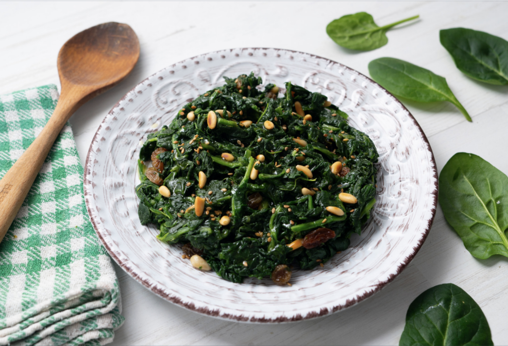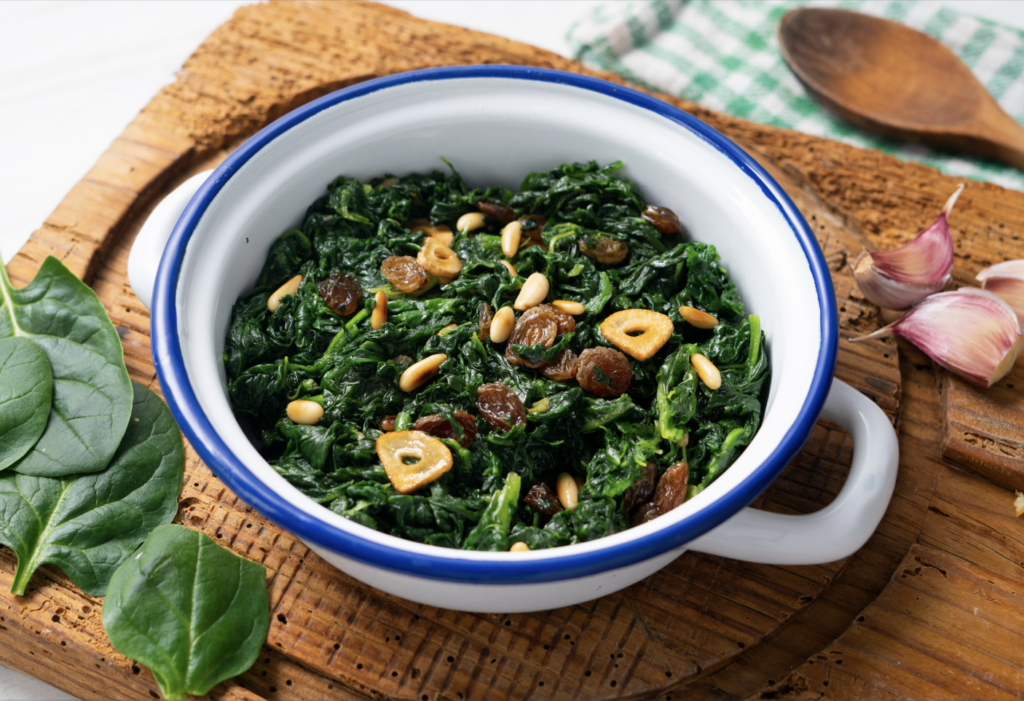 Espinacs amb panses i pinyons