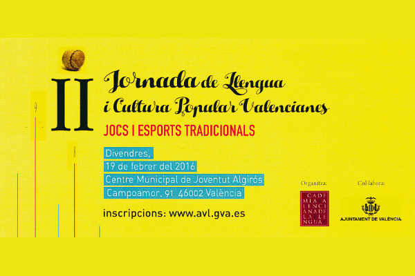 La II Jornada de Llengua i Cultura Popular Valencianes, que tindrà lloc el pròxim divendres, dia 19 de febrer, al Centre Municipal de Joventut Algirós de València, ha despertat un considerable interés entre els estudiosos, especialistes i aficionats als jocs i esports tradicionals de les nostres terres, temàtica sobre la qual girarà el contingut de la trobada, segons Josep Lluís Doménech, coordinador de la jornada i membre de l’Acadèmia Valenciana de la Llengua.