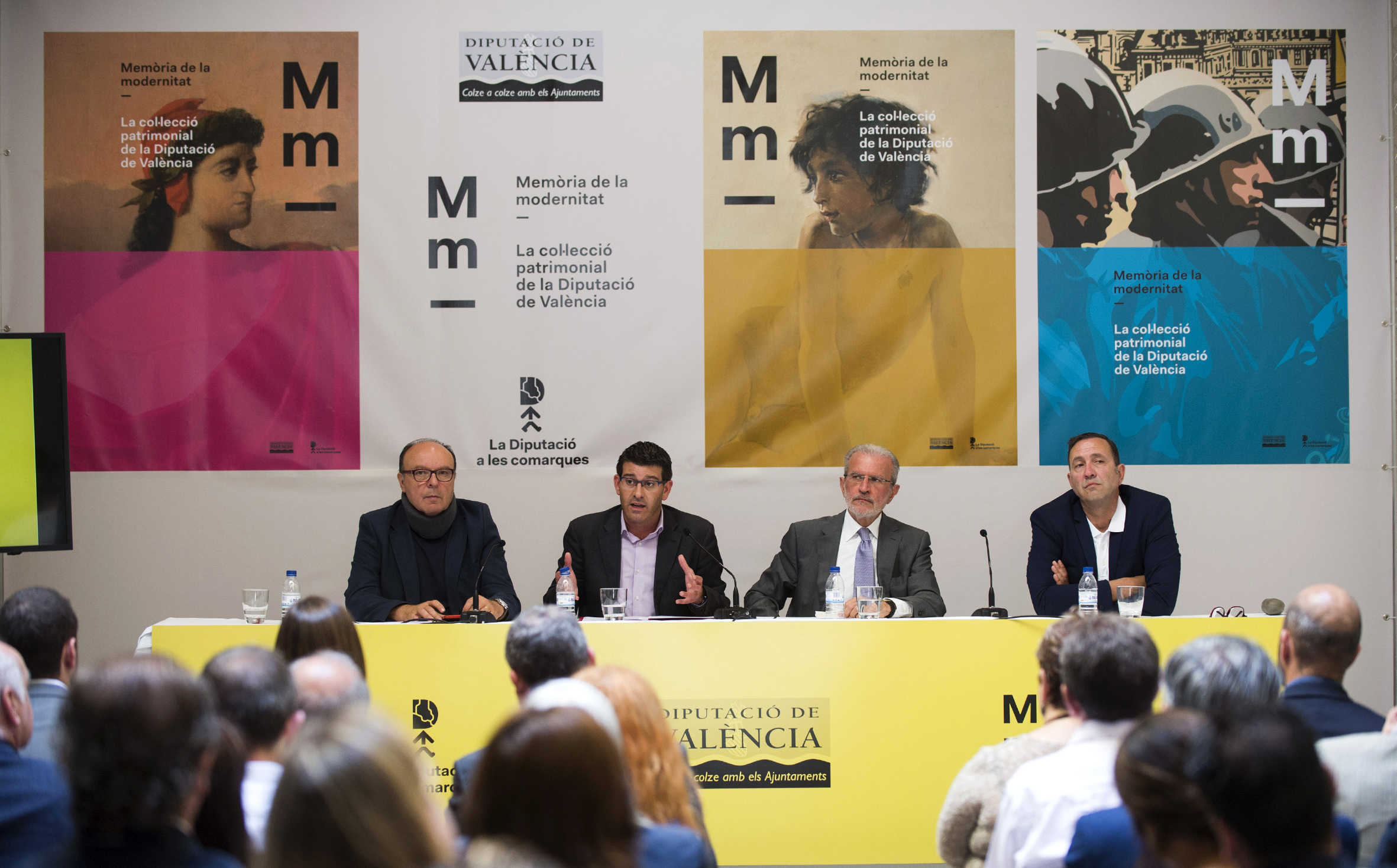 Aquest dijous es va presentar l’exposició que farà itinerància per diferents pobles de la demarcació de València amb la selecció de 120 obres pictòriques triades entre els més de 4.000 quadres que conformen el fons artístic de la Diputació de València. El triatge respon a la investigació que han dut endavant els investigadors de la Universitat, entre els quals es troba el catedràtic d’Història de l’Art de la UV, Rafael Gil. El comissari apunta al fet que mai fins ara s’havia fet un catàleg del fons artístic de l’ens provincial, una feina que cal seguir fent, ja que es tracta d’un volum considerable d’obres.
