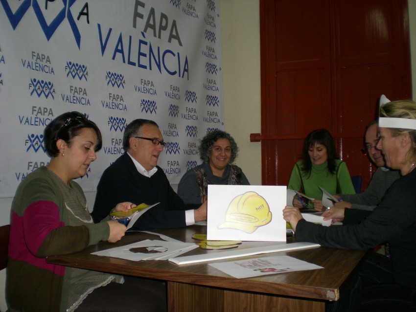 Davant la gran demanda de xerrades, l’executiva de FAPA-València no para d’enllestir els cascs que es distribueixen a l’acabar el debat. ʺLes executives de les federacions provincials son incansables i combatives i són la mostra de la gran capacitat de treball voluntari que desenvolupen les associacions de mares i pares d’alumnes en els centres educatiusʺ, destaca Tirado.