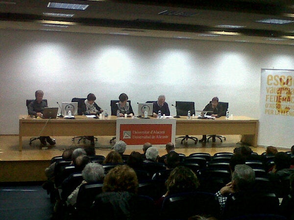 Avui s’ha celebrat sota el títol L’escola valenciana: un model de qualitat més enllà del plurilingüisme la Jornada de Cloenda del V Congrés d’Escola Valenciana. Aquesta sessió ha estat acollida per la Universitat d’Alacant i el vicerector de Cultura, Esports i Política Lingüística, Carles Cortés, constatat “el fet d’expressar el ferm i pregon clima de col·laboració entre Escola Valenciana i la Universitat d’Alacant, una col·laboració des de fa dues dècades constant i incessant: des de la contribució a activitats específiques ben concretes a ser l’espai de nombrosos actes i, especialment, les Trobades.